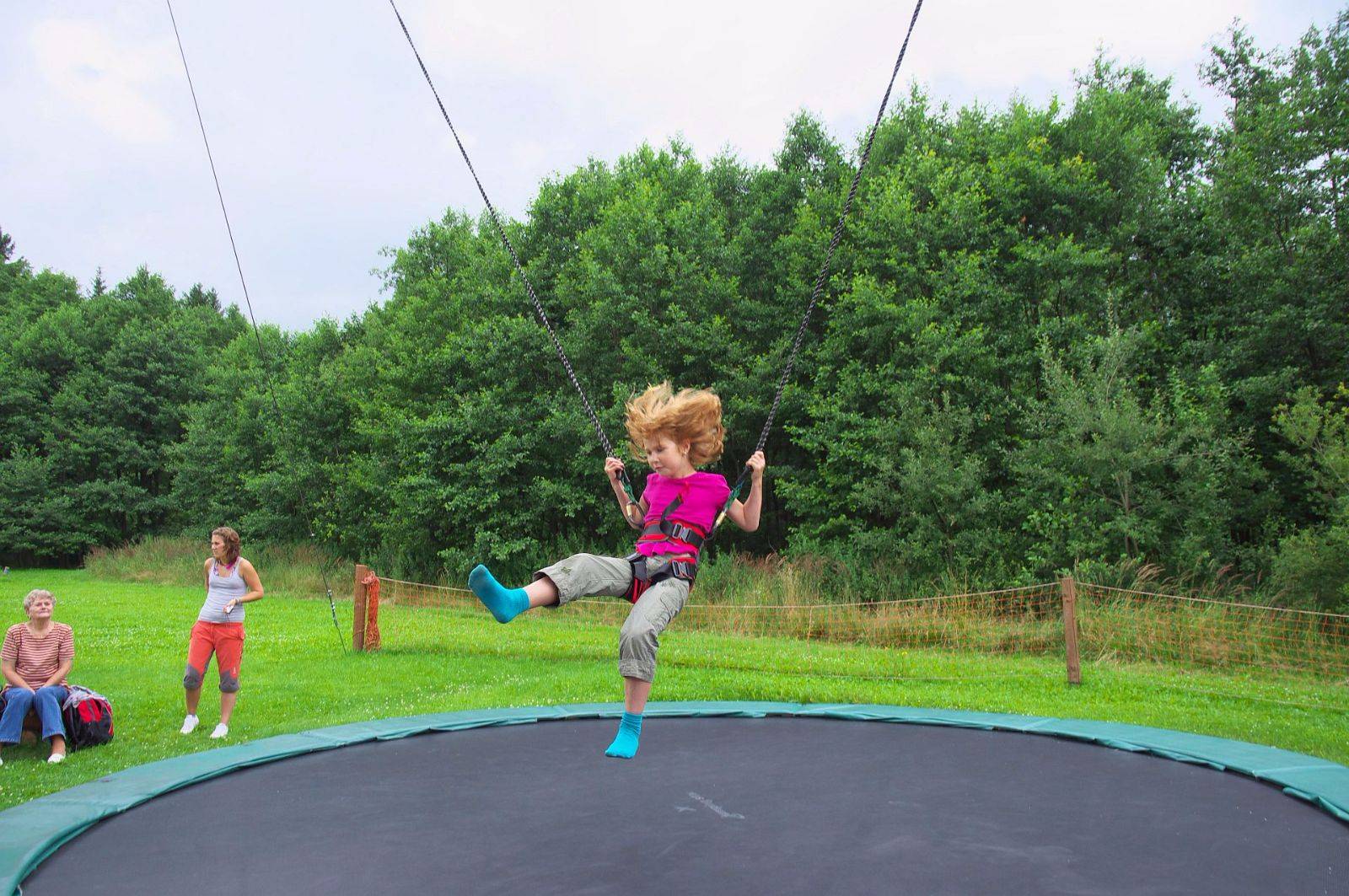 Bungee trampolínaPrý tuto věc vymysleli pro výcvik kosmonautů... Sedák, gumová lana a trampolína, toto vybavení stačí k tomu, aby jste točili vícenasobná salta vpřed, vzad a kdoví co ještě. Zažijte pocit 4 metry vysokých skoků a věřte, že po 5 minutách budete mít dost.