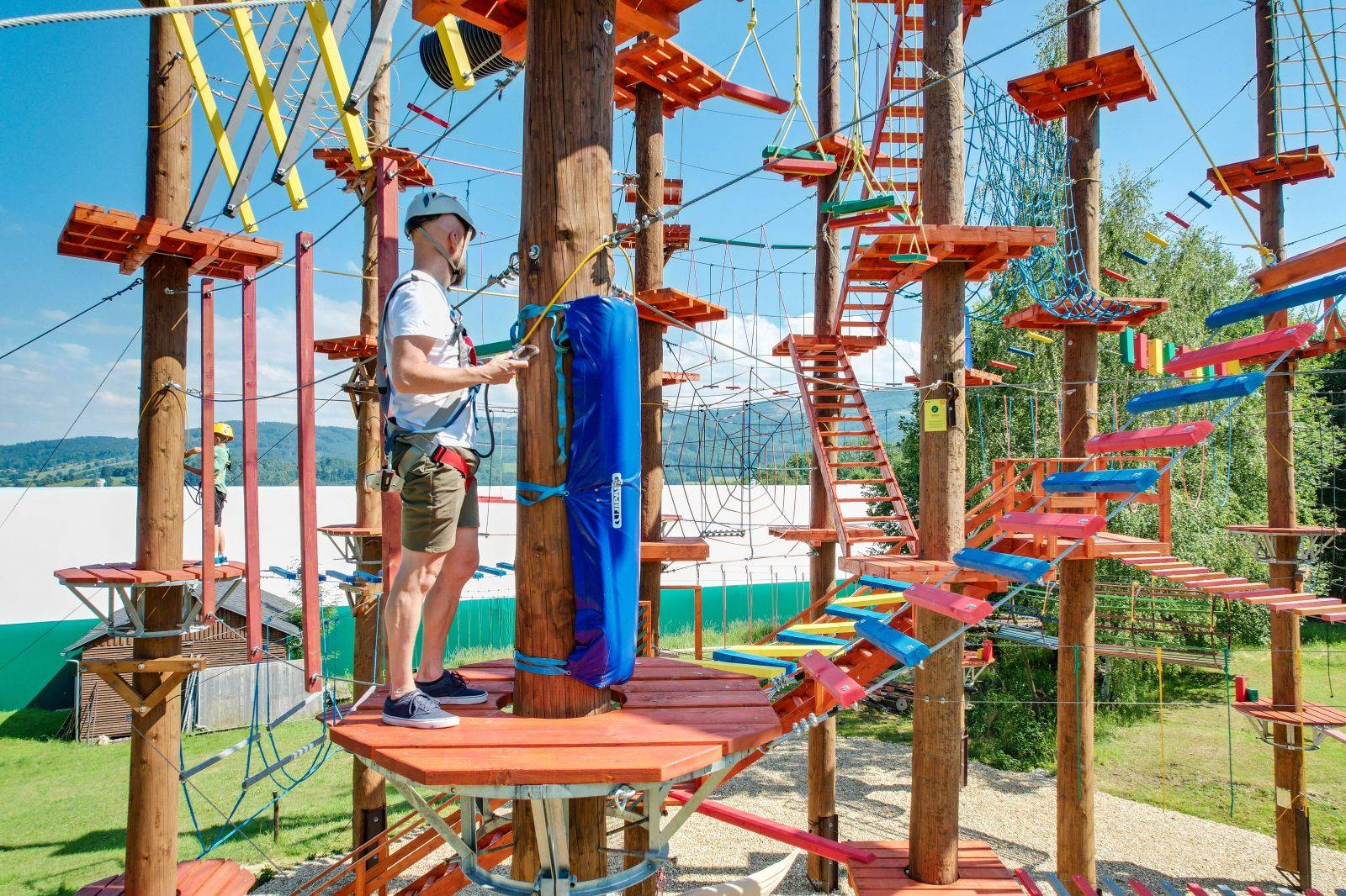 Lanové centrumPřijďte si vyzkoušet zcela nové, v r. 2022 otevřené, lanové centrum, které je součástí Adrenalin parku Jeseníky. Lanový svět plný překážek je určen dětem i dospělým, ke zdolání není třeba zvláštní fyzické síly. Před vstupem na vybranou trasu Vás instruktor seznámí s pravidly a způsoby jištění. Vstup do lanového centra není věkově nijak omezen, pouze výškou účastníka, která musí být minimálně 120cm. Do 15 let věku je třeba doprovod zletilého. Všechny překážky jsou umístěny mezi vzrostlými stromy, ve výšce cca 4 - 12 m nad zemí a ke zdolání Vám nabízíme 3 trasy: